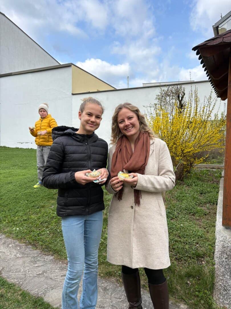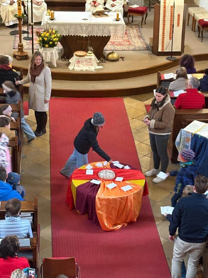 Gemeinsam wurde die Auferstehung und die Emmausjünger beleuchtet. Die Kinder verteiltendie traditonellen Oster Gruß Karten.